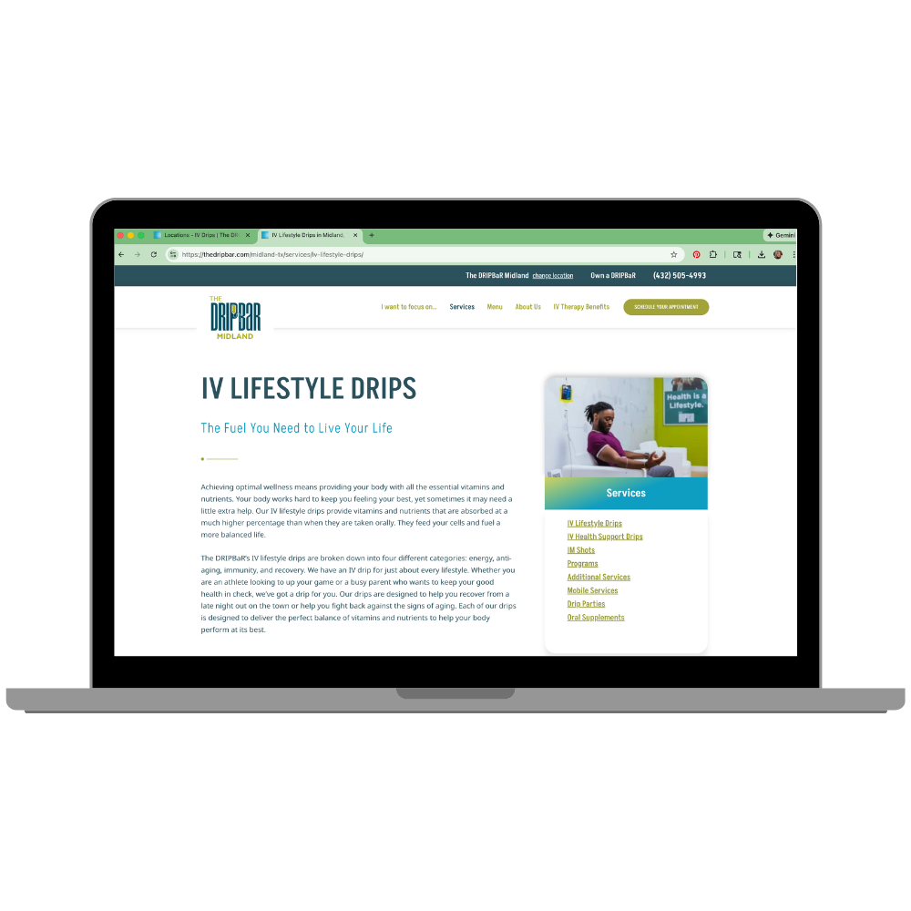 A personal wellness company that provides intravenous (IV) therapy infusions, intramuscular quick shots, and oral supplements.